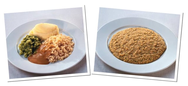 Naudan, sian ja broilerin jauheliharuoat karkeana soseena, hummus, pehmeä tofu, kypsennetyt palkokasvit, munakas, peruna- ja kasvissose, kiisseli, hiutalepuuro, pehmennetty leipä. Useimmat maitovalmisteet. Soijajogurtti/rahka.